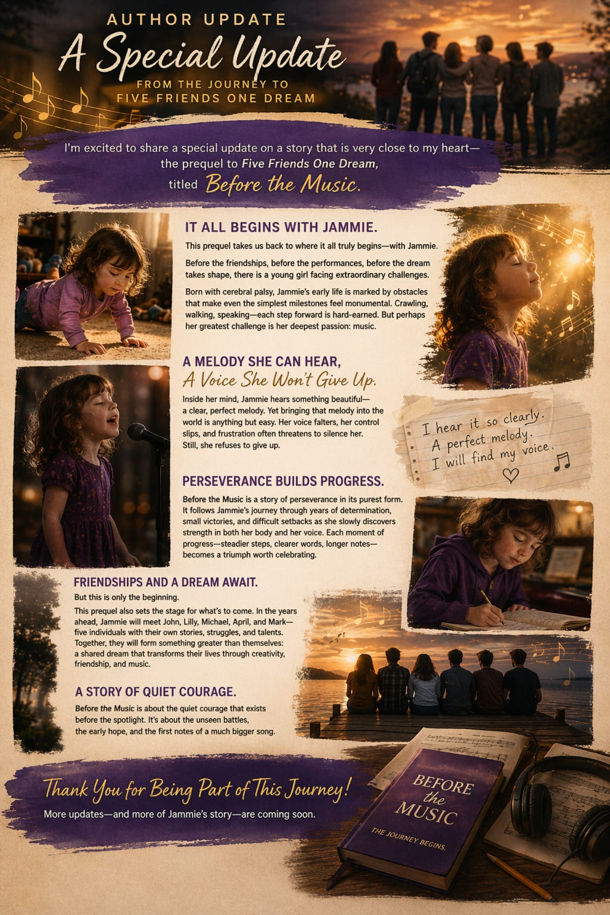 I’m excited to share a special update on a story that is very close to my heart—the prequel to Five Friends One Dream, titled Before the Music.